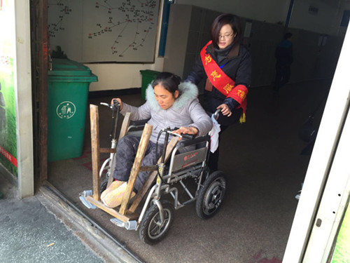 司机看见了,也过来搭把手,两人一起把残疾乘客子扶上了车。残疾乘客坐到位置后,杨娇妹热心地帮她系好了安全带。