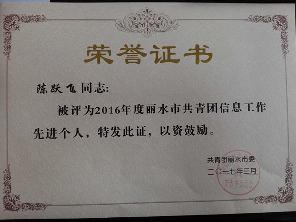 3月9日,共青团丽水市第四届委员会第二次全体会议在市行政中心108会议室顺利召开。会上,集团公司团委被授予“丽水市共青团工作目标考核优秀单位”,同时鉴于陈跃飞同志在共青团信息工作方面的突出表现,被团市委评为“2016年度丽水市共青团信息工作先进个人”。