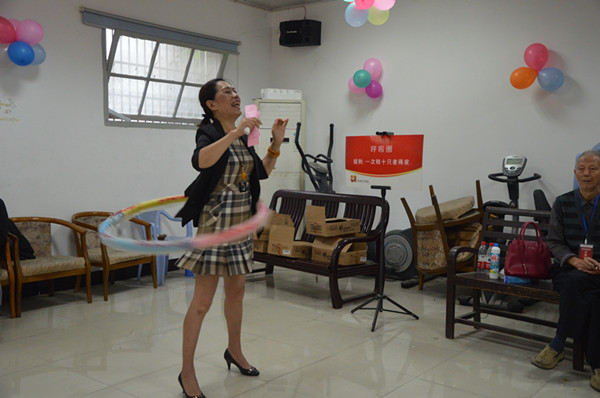 “看看,老徐一口气就把乒乒球吹到终点了”、“她呼啦圈还转的这么好,厉害”……活动现场热闹的气氛感染着每个人。难得碰面的老同事、老朋友也格外珍惜这难得的相聚机会,共聊家长里短,共叙晚年生活。