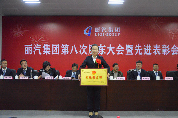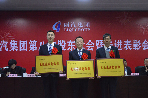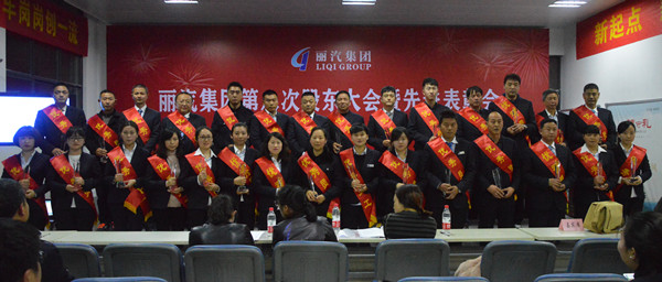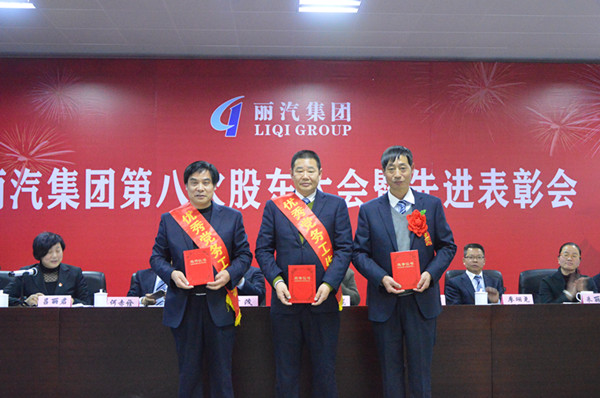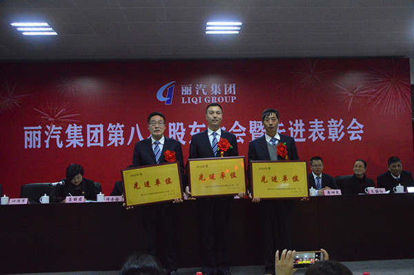 3月28日,丽汽集团第八次股东大会暨2016年度先进表彰会上,2016年度各类先进基层党组织、优秀党务工作者、优秀共产党员;2016年度先进单位、先进班组、优秀员工;2016年度先进分工会、工会积极分子;2016年度先进团支部、优秀团干等接受了表彰。当各位先进人物(代表)从主席台领导手上接到象征荣誉的奖牌或证书时,会场的气氛再次被推向高潮。表彰大会号召丽汽集团全体员工以吴斌、章双林等杰出代表为榜样,克服困难,再创佳绩,共同走出一条 “创业创新、健康发展”的丽汽之路。