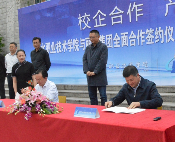 下午2时50分,丽汽集团总经理薛和有与丽水职业技术学院院长梁伟祥签订“校企合作”协议。