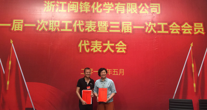5月2日下午,丽汽集团工会与浙江闽锋化学有限公司工会“友好共建协议”签订仪式在闽锋化学有限公司职代会上隆重举行,闽锋化学有限公司一百余名职工代表共同见证了签约仪式。