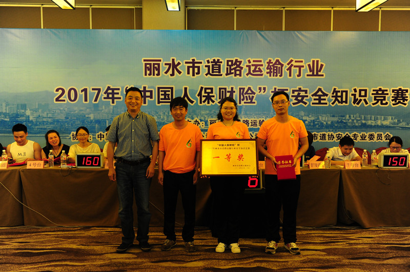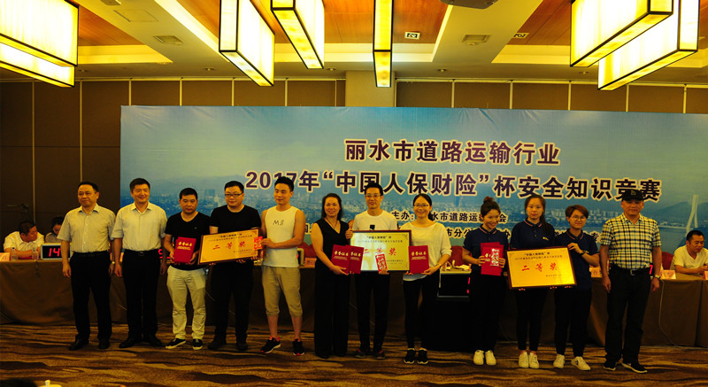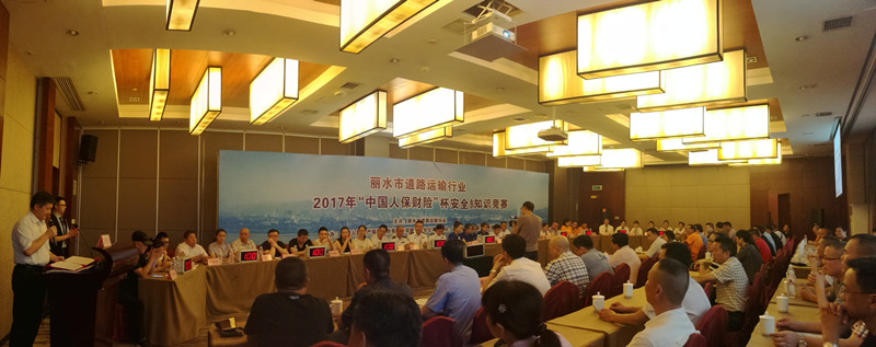 6月20日下午,由丽水市道路运输协会主办的2017年“中国人保财产保险杯”安全知识竞赛在紫荆花大酒店举行。本次安全知识竞赛以“全面落实企业安全生产主体责任”为主题,弘扬安全发展理念、达成安全共识、普及安全知识。来自丽水市道路运输协会11个会员单位33名选手参加角逐,市交通运输局、市安监局、市道路运输管理局、市交警支队、市高速公路交警支队等部门领导出席竞赛活动,并受邀担任活动评委,各县市运输企业单位代表观摩了比赛。