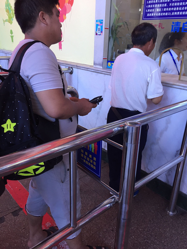 一米线前的秩序,是东站创文明城市工作中遇到的一道难题,在售票窗前,旅客们排队买票都是一个紧挨着一个,没有站在一米线后等待的意识,且根本不会注意到脚下不起眼的一米线,劝导员们往往是一个班下来口干舌燥,筋疲力尽。自从在售票窗前安装了单向推动门后,大部分旅客都会自觉停留在单向推动门后面,等前面的旅客买好票离开后再进入,只有少数年龄较大的旅客还需要工作人员的劝导。单向推动门的安装极大的减少了员工的工作量,提高了工作效率。工作人员在维持一米线秩序的同时,还可以兼顾售票厅的卫生。
