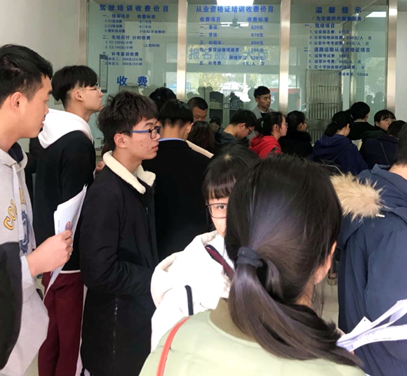 3月3日,高校开学首日,前来报名的人数就达到了80人。面对高校学生争相报名的火热场面,汽校马上启动预案,联系大巴车负责两高校报名学生的集中接送。所有工作人员也放弃午休时间,加班加点为学员们办理报名手续。学校为确保学生报名注册工作顺利进行,还安排专人对每一个报名学员进行全程陪同。报名服务中心的工作人员从8点上班一直忙到傍晚18:30才完成当天的报名注册工作。