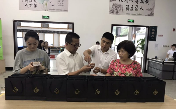 陈红艳主席一行先在九城山货大卖场进行了参观体验,余雷经理在陪同过程中重点就卖场情况、丽水山耕品牌系列产品和卖场的进出口商品销售优势进行了详细介绍。陈红艳主席一边听取介绍,一边询问各类产品细节,还现场体验了山茶油护肤产品。并拿出手机打开丽汽集团微信会员系统查看了自己的会员权益,向卖场工作人员说道:“打完折后的价格还是很吸引人的!”