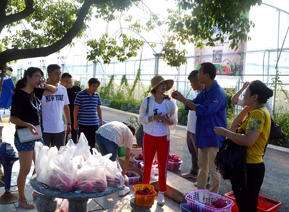 在缸窑村火龙果采摘基地,工作人员向大家介绍了基地火龙果的无公害种植模式和火龙果果肉、果皮以及花朵的食用价值。工会主席(组长)们也亲自体验了一把火龙果的采摘。看着枝头红艳诱人的果实,大家脸上挂满了的丰收喜悦。