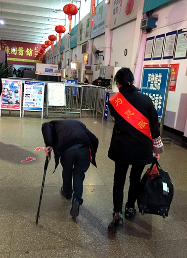 2月15日春运还在继续,我们的温情故事仍在上演。13:00,东站的服务台还是有些忙碌,服务员郑淑燕刚为一位旅客办完行包寄存,突然听到一声“这里能买票吗?”郑淑燕随即环顾四周,却看不到一个人,“哪里发出的声音?”正当郑淑燕纳闷时,服务台上出现了一只手拿一张百元钞票的手,郑淑燕随即探头去看,一个弯着背,身材矮小的中年男子出现在郑淑燕面前。在问清了该旅客要去的目的地后,郑淑燕到售票窗帮他买好了车票,看到他还有一个包,郑淑燕主动提出帮他提包,送他上车。旅客客气地说:“不用了,我慢慢走可以拎得动的。”看着他吃力地样子,郑淑燕二话不说,从他手中接过包,跟在他旁边慢慢地走,一直送他到检票口。到了检票口,郑淑燕又交代检票员检票时帮助这名旅客先检票上车。