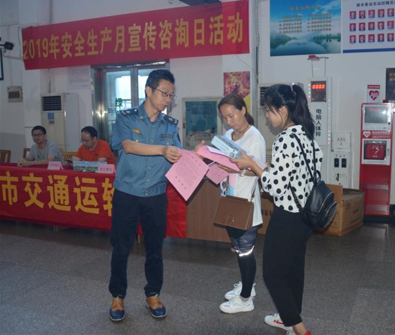 宣传人员根据车站人员流动量大、乘客活动范围广、信息传播速度快的特点,在车站的售票窗口、车厢内、候车厅等人员聚集地点,采用“接地气”的方式,方言结合普通话进行“安全乘车 平安出行”的宣传,提醒广大乘客在乘坐客车时,不能携带易燃易爆、要系好安全带、杜绝向车窗抛物,养成良好的乘车习惯;不坐无牌无证、非客运、车况不好的破旧车、黑车,保护好自身安全,做文明乘车的带头人。通过此次宣传进车站活动,进一步扩大了安全出行宣传覆盖面,有效提高了广大群众的安全出行意识,切实筑牢乘车安全“防火墙”。