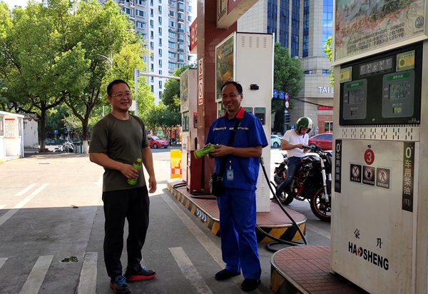 在黄泥山加油站,集团公司党委书记、董事长叶茂将冰镇绿茶送到加油工手中,感谢他们高温下的坚守,并关切地交待他们要注意高温期间的防暑事项。在驾培训练场地、东站客运站场等,集团公司副总经理林周颖、总经理助理叶剑飞将一份份降暑饮品送到奋斗在岗位上的员工手中,并向他们致以亲切的问候。让员工们充分感受到了炎炎夏日里的“清凉”,感受到了集团公司领导的深切关爱和丽汽大家庭的温暖。