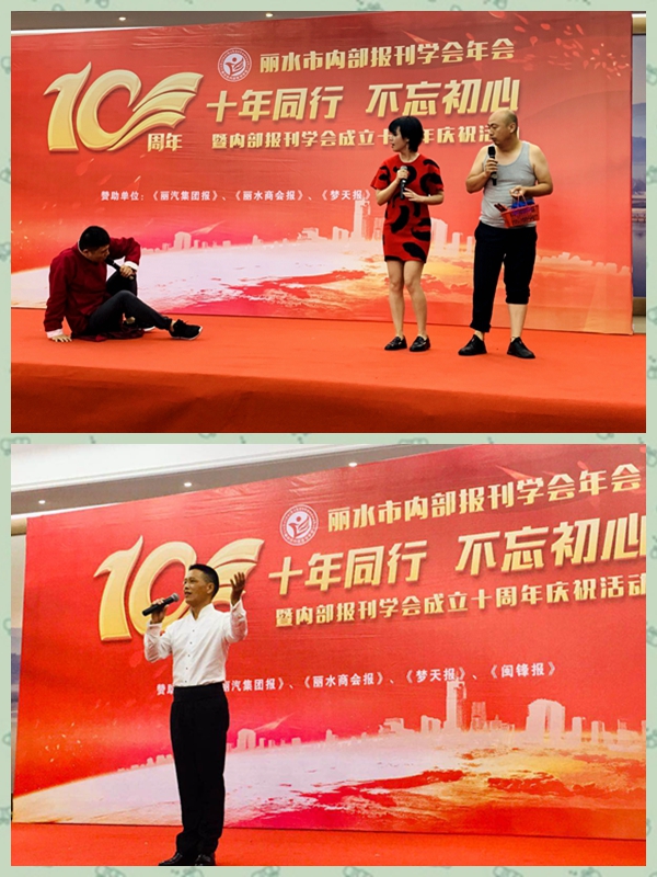 今年是建国七十周年,也是丽水市内部报刊学会成立十周年,为此,学会举行以“十年同行,不忘初心”为主题的庆祝活动。会长吕丽君热情洋溢的致辞,理事单位成员集体朗诵的浙西南革命精神篇--《用信念照亮奋斗之路》拉开了庆祝活动序幕。集团公司选送的小品《赛诸葛》、独唱《此时此刻》,还有《青田侨乡报》、《闽峰报》等选送的节目和现场抽奖环节,庆祝活动高潮迭起,气氛活跃。