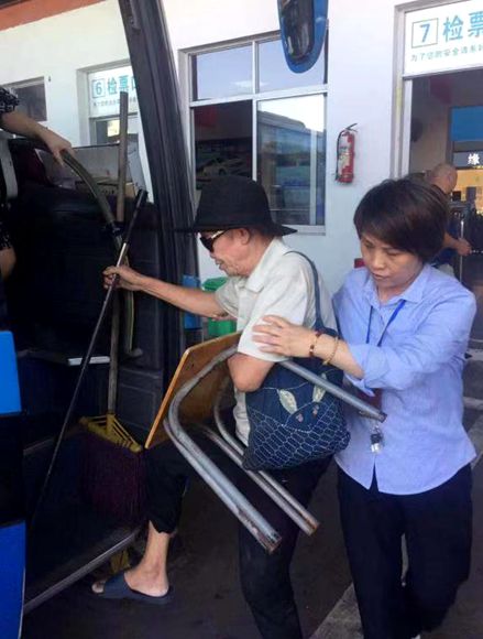 9月24日13:35,丽水开往青田的班车正准备开始检票,正在等待检票的旅客排起了长队,队伍中一位戴着墨镜,左手拿着一只凳子,右手拿着一根盲杖的年迈旅客引起了检票员林丽的注意。根据经验判断,这肯定是一名盲人旅客,且年事已高。检票员林丽立即上前询问,在询问中了解到,这名盲人旅客,就是要乘坐正要开始检票的13:45前往青田的班车。林丽向其他旅客作了解释之后便小心翼翼地搀扶着盲人旅客到队伍的最前面,林丽迅速地为盲人旅客检好票,并扶他上车,哪里有台阶,哪里需要转弯,林丽都一一提前告诉他。在盲人旅客落座稳当后,林丽为他系上安全带,并交代乘务员,一路上多加照看,到站下车后扶他下车送他出站。听着林丽对乘务员的细心交代,盲人旅客紧紧握住林丽的手,激动地说:“我眼中的世界是黑色的,但是你的举动让我体会到了尊重、温暖和阳光。”林丽坦然一笑地说:“我只是做了应该做的事,这是我的本职工作。”