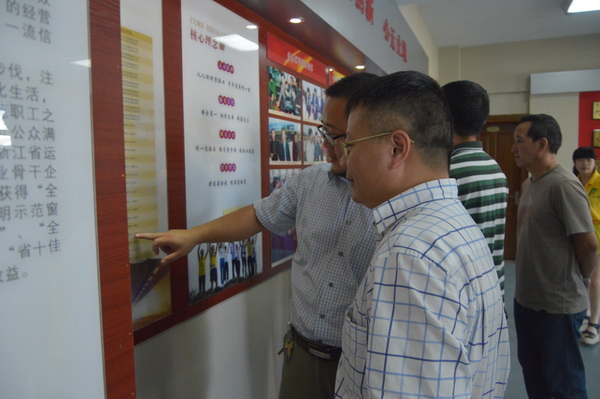 会议首先参观了丽汽集团五楼荣誉室、企监会办公室和一楼公开栏、宣传窗。在参观过程中,各参会代表对丽汽集团近几年来所取得的成绩表示赞扬,对丽汽集团企监会在短期取得的成效表示肯定。参观结束后,丽汽集团党委书记、董事长叶茂作了典型经验介绍。