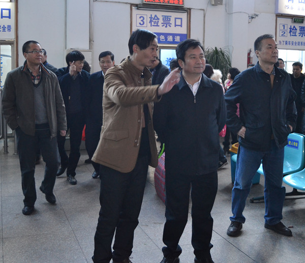 2月13日上午,丽水市市长黄志平及市各有关单位领导在集团公司董事长叶茂和东站经理江小华的陪同下,对东站的春运安全工作进行了视察。