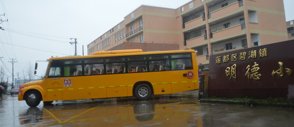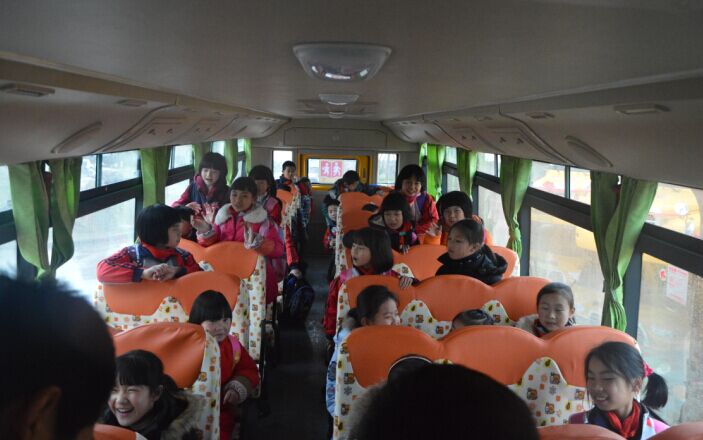 仪式结束后,部分学生坐上新校车,进行了一次体验之旅。学生雷晨波说:“我以前上学都是坐电瓶车的,遇到下雨天衣服都会淋湿,还很冷,现在可以坐新校车了,以后,衣服不会被淋湿了,也不会冷了。”