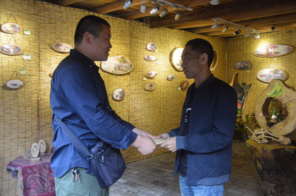章双林告诉雷发荣,这个钱是他去年到北京人民大会堂接受“全国见义勇为英雄司机”颁奖时得来的奖金。北京回来的第二天,就从五万元奖金里拿出了三万元,通过红十字会捐给了里东灾区。今年初,也是通过老白谈天电视节目,得知枫树湾车祸受伤孤儿急需救助,又给他捐了5000元,现在还还剩下15000元,他想把这笔奖金全部用来帮助身边需要帮助的人。现在能够帮助到身患重病仍不放下画笔的雷发荣,他觉得很开心。雷发荣说,他生病以后,也得到了很多人的关心和帮助,他很感激,所以他画的每一幅风景画里面,都有一轮冉冉升起的太阳,就像生活一样,每天都充满希望。
