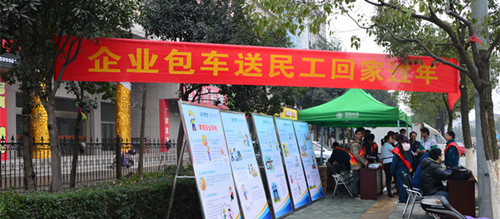 为确保民工回家之路走得更顺利,1月7日,在丽水开发区举行的“民工服务月”中,处州晚报、丽水市总工会和丽汽集团联合推出“企业包车送民工回家”活动,向民工朋友发放了100多份“企业包车送民工回家”宣传资料,现场办理企业包车、拼车和散票购票业务。