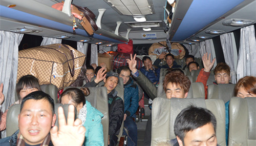 今天早上6点,“企业包车送民工回家过年”活动的首趟包车,在丽水富泰革基布有限公司发车。