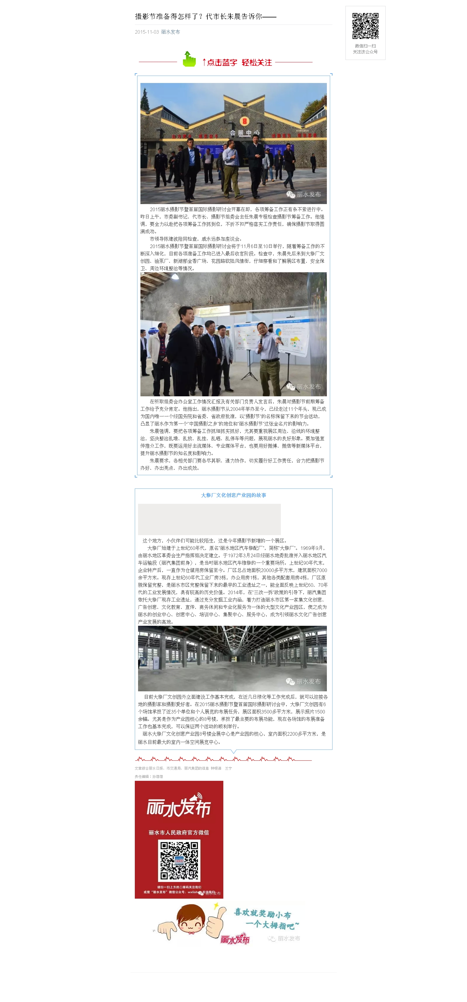 【丽水发布公众微信】摄影节准备得怎样了?代市长朱晨告诉你--