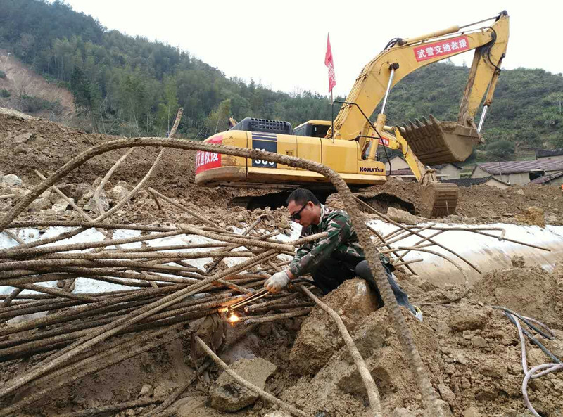 修理工陈健和叶仕林组装好气割设备后,将钢筋切隔分段,金旭阳和吴天军两人则和现场的消防、武警战士一起将切割好的钢筋搬离现场。在搬钢筋的过程中,他们的脚陷入了泥潭,手被钢筋磨出了水泡,汗水湿透了衣服,但谁也没有吱一声。经过众人马不停蹄的3个多小时的努力,被掩埋的二十多吨钢筋全部按要求搬离。