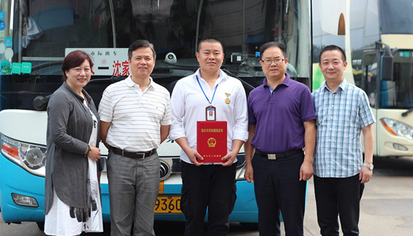 6月5日上午,丽水市总工会领导专程到丽汽集团客长运分公司,给“最美司机”章双林送来丽水市劳动模范奖章和证书。