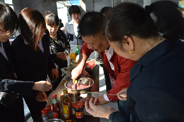 这次活动提倡女工人人动手,共同参与“煮”妇活动,包五彩饺子。早上9点不到,场地内已异常热闹,按预定的分组形式,“煮”妇们齐动手,和面、穿烤串、包饺子,很快颜色多样、形状各异的饺子也纷纷的在大家眼前呈现,“你绿色的好看”、“你的饺子做的圆嘟嘟的真可爱”、“你教我怎么擀皮吧”、“这个饺子大的”…… 你到我组看一看,我到你组瞅一瞅,大家互相探讨包饺子的技术,互相嬉闹,欢笑声此起彼伏。