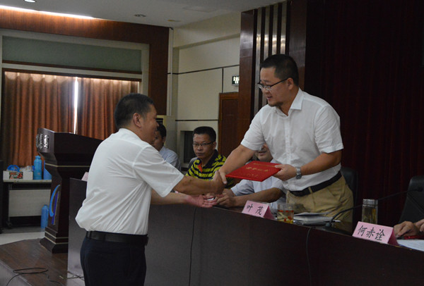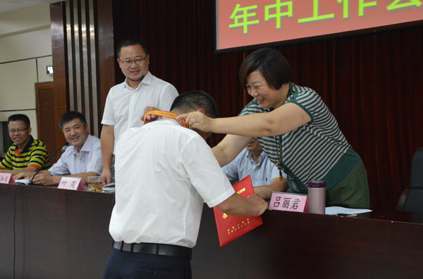 7月28日下午,丽汽集团在召开年中工作会议、第三季度安全生产例会暨护航G20工作会议前,隆重表彰了长运分公司的吴斌再次荣获全国“爱岗敬业驾驶员楷模”荣誉称号。丽汽集团党委书记、董事长叶茂为吴斌颁发荣誉证书、丽汽集团工会主席吕丽君为吴斌佩戴奖章。