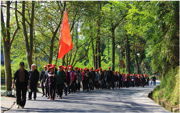 共有一百多名老同志参加了本次活动,大家从白云森林公园广场出发,沿着白云山栈道至双桥健步走了3公里。大家一个个精神抖擞、兴高采烈,庞大的队伍成为森林公园一道靓丽的风景线。