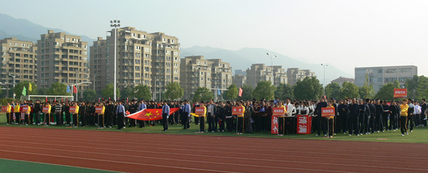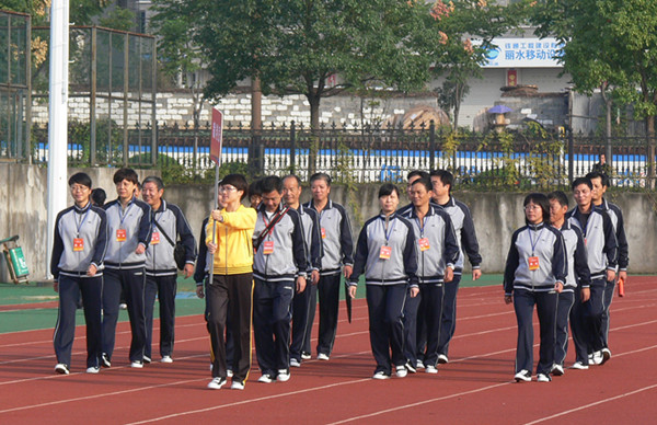 运动员、裁判员入场 市体育局局长周一红致贺词 总经理薛和有致开幕词 市总工会党组书记、常务副主席、集团公司董事长、党委书记张为社宣布运动会开幕 运动员代表宣誓裁判员代表宣誓