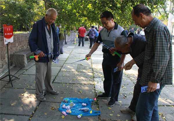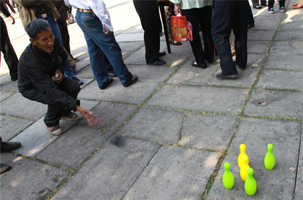 本次游园活动主要以快乐小型游戏为主,有飞镖、跳绳、踢毽、夹弹珠、钓鱼、保龄球、投圈、投沙包、兵乓球击准、大转盘、呼啦圈等,项目既简单,又富有趣味性,深受老年人的喜爱,大家在欢笑声中愉悦了身心,增进了彼此的感情。