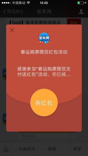 只要买张车票!现金红包就送你!