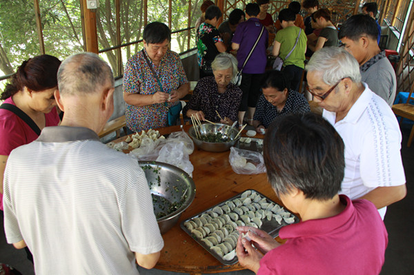 此次活动共有120多名体协会员参加,大家都想借此机会和大自然来个亲密接触,体协委员利用休息时间为大家采购了丰富美味的食物。利用新世纪绿草地依山伴水的地理资源优势,在秋日和煦的阳光下,在风景秀丽的南明湖边,我们老年人在绿草地上展现了 “年轻人”舞步,跳着佳木斯健身操动作,摆动双臂,迈开双脚,走出健康,走出幸福。当走进餐厅看见桌子上摆好的饺子皮和饺子馅,老同志们便纷纷摩拳擦掌,跃跃欲试。他们各自分工后便热火朝天的忙起来,现场笑声不断。