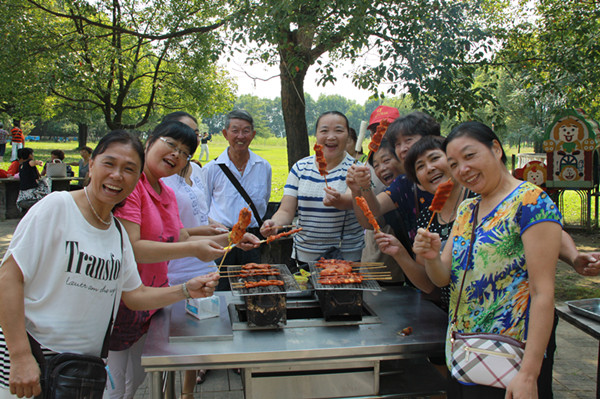体现了“动手包饺子,温馨乐无穷”的氛围。另一组又支起烤炉,只见大家争先恐后、分工明确,充分发挥团队协作的精神,一串串食物在他们默契的配合下变成一串串美味佳肴,忙得不亦乐乎!大家展示了不同的烧烤方法和技艺,一时间炊烟缭绕、美味飘香,大家吃着自己亲手烤出的各种食品,聊着自己在退休后生活中遇到的各种趣事,其乐融融,欢声笑语随着缕缕炊烟萦绕在空中。在享受美食的同时我们一边欣赏南明湖的美景,真正达到人和自然的和谐统一。使退休职工享受到一份放松的心情。同时增进了老同志之间的感情,为业余生活增色添彩。