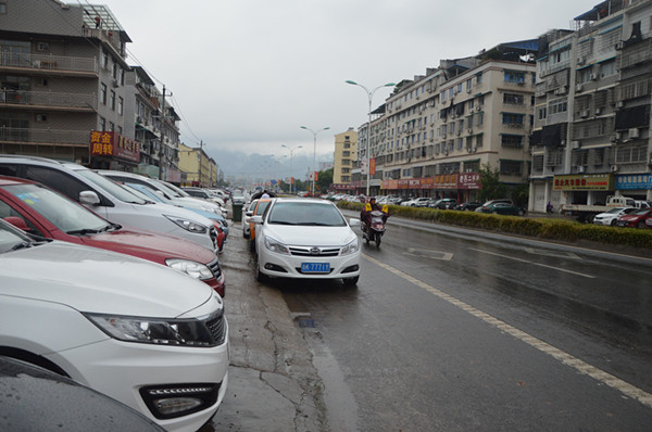 包干路段地处二手车交易市场,机动车随意停放现象普遍