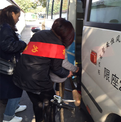 司机看见了,也过来搭把手,两人一起把残疾乘客子扶上了车。残疾乘客坐到位置后,杨娇妹热心地帮她系好了安全带。