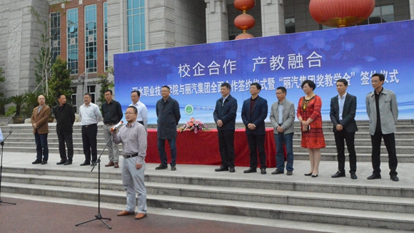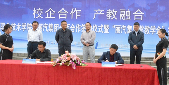 丽水职业技术学院是丽水本土培养专业技术人才的摇篮,丽汽集团作为一家有着八十多年历史的企业,企业在转型升级发展中对人才也是求贤若渴。通过 “校企合作”,学校和企业将加强彼此间教学和业务方面的交流,利用“产学研合作”和“工学结合”的方式,在汽车服务、旅游、传媒文化、服装共享平台、会计等领域进行合作。学校将在丽汽集团建立“大学生实践教学基地”和“人才培养及项目合作开发基地”,企业在丽水职业技术学院设立“丽汽集团奖教学金”、“丽汽订单班”,深度融合企业的业务优势和学校的教学科研优势,促进高校师生人才的培养,为企业发展输送优秀人才,提升企业的创新能力,实现校企共赢局面。