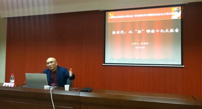 主讲教授陈敬东为参会党员干部献上了一堂精彩的讲座--《新时代:从“新”解读十九大报告》。讲座从“我们走到哪里”、“新时代新使命”、“新时代新引领”、“新时代新目标”、“新时代新任务”五个方面对十九大报告进行了新颖地解读,对企业找准新时代的自身新定位、以新思想引领企业未来新发展有着很好的启迪作用和借鉴意义。