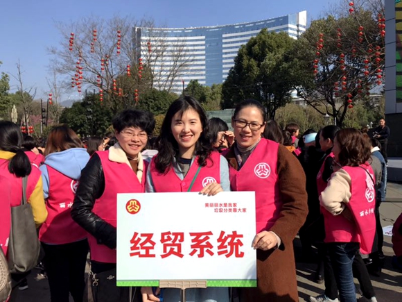 为纪念第108个国际妇女节,引导全市妇女积极投身秀山丽水大花园建设。3月1日,市妇联“美丽庭院,巾帼示范;垃圾分类,巾帼先行”誓师大会在丽水市处州公园喷泉广场举行。丽汽集团3位女工代表参加誓师大会,并前往水木清华南苑参与垃圾分类宣传和环境卫生打扫活动。