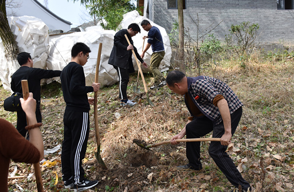 春回大地、万物复苏。经历了年后连续的阴天,今天迎来了阳光明媚的好天气。 趁着春光明媚、阳光正好,今天下午,南明文化传媒全体职工到大修厂文创园参加植树活动。男同事们拿着铁锹挖地,女同事们手拿树苗紧密配合,共同栽下一颗颗桃树、石楠等植物,也共同栽下了公司新年的希望。