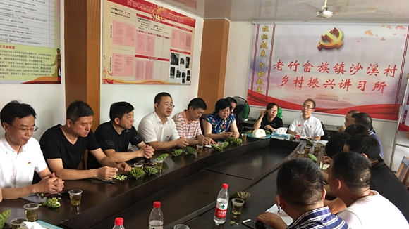 沙溪村村民主任许永卫随后就沙溪村在“旅游+文化”发展上具有的得天独厚优势进行了介绍。他说:沙溪村是目前华东地区最具有浓郁畲族特色的山村,开展过畲族婚嫁、祭祖表演、畲歌对唱、“山哈大席”等一系列具有畲族特色的风情旅游文化活动。其中“山哈大席”自2013年以来已经举办300场,但由于受资金、内容提升和文化包装三方面的制约尚未形成产业。村里有意向通过“村企合作”将其打造成以田园为背景,集文化演艺为一体的畲族乡村宴会。在此基础上再推进三产融合,实现“景村合一”的远期目标。