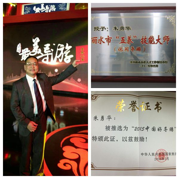 2011年,丽水市旅游局举办了首届金牌导游大赛,旅游集散中心推荐朱勇华参加,大赛与平时带团讲解是不一样的,面对年轻靓丽、舞台表现能力强、记忆力好的年轻对手,年过半百的他毫不示弱,朱勇华以其深厚历史文化底子,精益求精的戏曲才艺表演,生动又有独到见解的讲解,勇夺丽水市首届“金牌导游”荣誉称号。