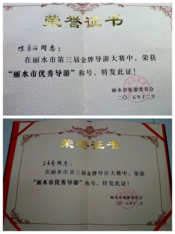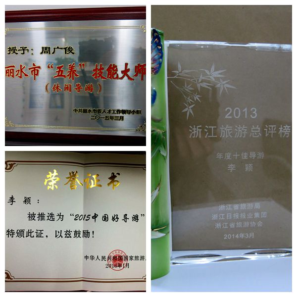旅游集散中心成为导游成长的福地,近年来,涌现出了大批优秀导游,朱勇华曾先后两次获得“丽水市金牌导游”称号,2015年度获全国最美导游入围奖,丽水首批“五养”技能大师,并被丽水职业技术学院旅游专业聘为兼职讲师、被丽水学院旅游专业聘为校外辅导师;周广俊入选国家旅游与文化部“万名旅游英才”金牌导游培养项目人员,全国高级导游,丽水首批“五养”技能大师;李颖被推选为2015年中国好导游,被授予2013年度浙江省十佳导游;陈岳丽、马秀秀被评为“丽水市优秀导游”。