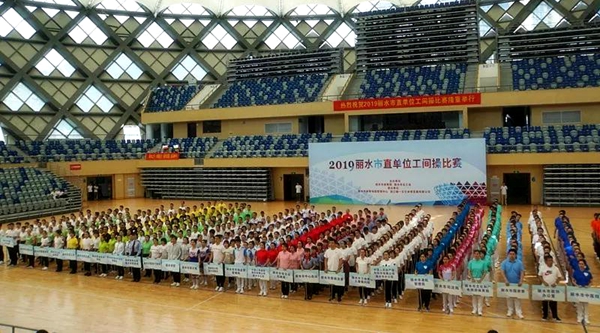 5月29日下午,由丽水市体育局、丽水市总工会主办的2019年丽水市直单位工间操比赛活动在市体育中心体育馆举行,共有来自市直各单位的28支代表队参加了比赛。