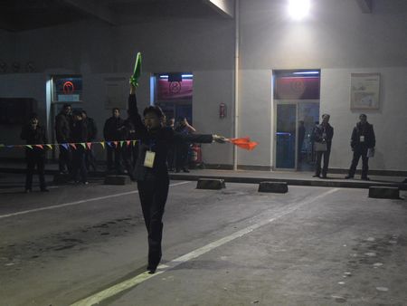 12月4-5日晚上,集团公司从业人员岗位技能比武--行车操作比赛在客运东站场地内举行。东、西两站各有5名选手参加。比赛要求选手在规定时间内检票20张并检出错票,旗笛指挥要求动作规范、指令清晰准确,整个行车操作过程必须言行举止文明、微笑自然。