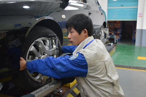 早上8:30分,准时开赛,选手们个个精神抖擞上阵,准备一展身手。只见他们熟练展开四轮轮胎磨损情况、四轮动平衡及钢圈轮胎变形情况检查等一系列操作。台上选手们比技能,台下其他修理工饶有兴致地观摩学习。