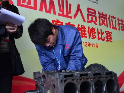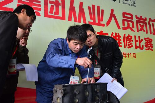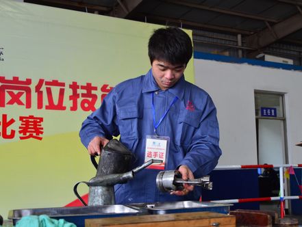 11月28日上午8点半,客车维修操作比赛在快客分公司修理车间首先开赛了。客长运分公司、快客分公司各选派出4名参赛人员。比赛的要求是比赛人员分别在30分钟的时间里,完成单缸活塞连杆组的拆装与测量,即熟练拆开汽缸筒活塞连杆组和活塞三道环,接着用工具进行仔细检查和测量,同时填写了检查测量记录表,最后装复。8名参赛人员逐一展开技能比武,看谁能在规定时间内又快又好地完成比赛内容,再以完成的质量和操作用时短决出实际操作成绩。因为还未理论考试,所以,昨天的比赛不能评出总成绩。