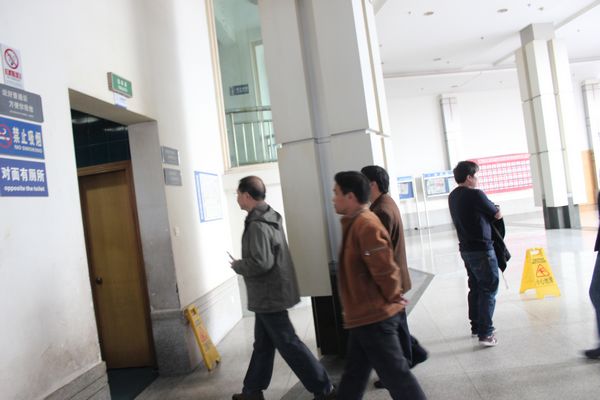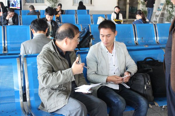 环境保护组专家在候车厅内现场随访旅客省卫生城市问卷调查