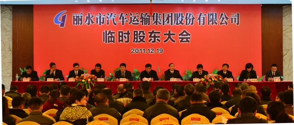 12月19日晚,集团公司在丽水中意大酒店召开临时股东大会,会议由董事、总经理薛和有主持。市国资委主任王刚、市总工会常务副主席、党组书记、丽汽集团董事长张为社、丽汽集团党委书记陈建敏、监事会主席吕丽君及丽汽集团董事何赤诠、周启荣、林周颖、王斌、杨伟城在主席台就坐。