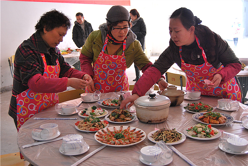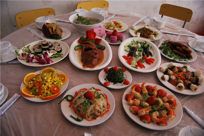 别看她们平时文文静静的,但是一说到做饭烧菜,那一个个都摩拳擦掌,煎、炒、烹、炸、闷、溜、熬、炖……参赛选手从容不迫地烹饪自己的拿手好菜,手撕豆腐更入味,胡萝卜汁做水饺更营养,一个个动作娴熟、麻利。