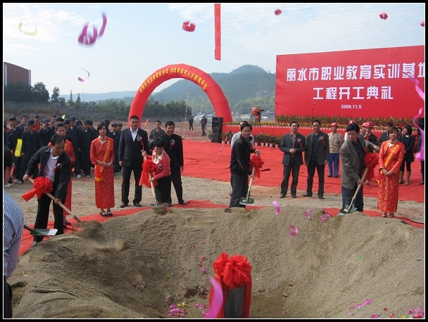 11月5日上午,在阵阵礼炮声中,市重点工程--丽水市教育实训基地正式开工建设。丽水市委副书记、市长卢子跃、副市长廖思红等领导出席开工典礼。